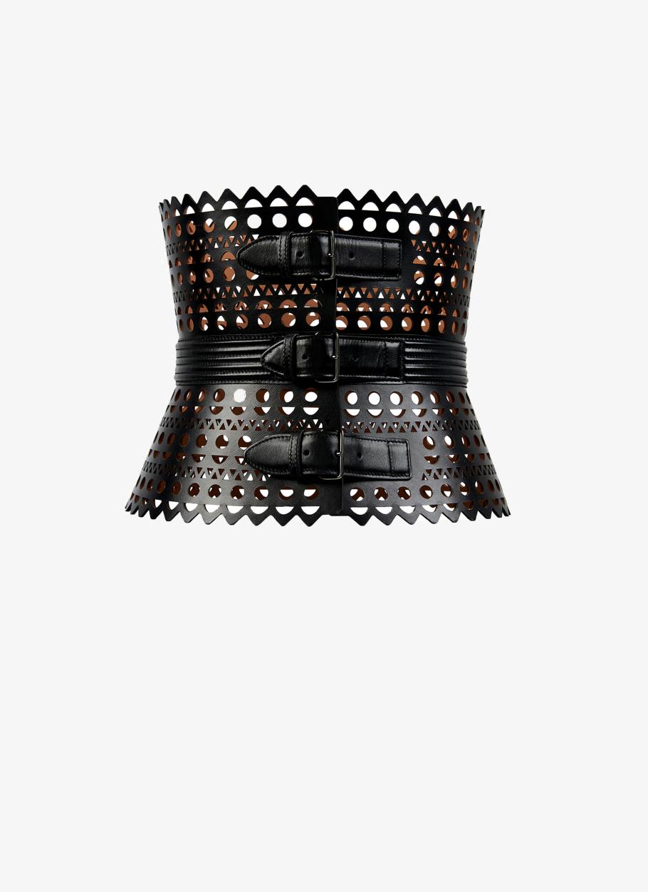 ALAÏA Black Corset Belt in Vienne Wave Lux Calfskin