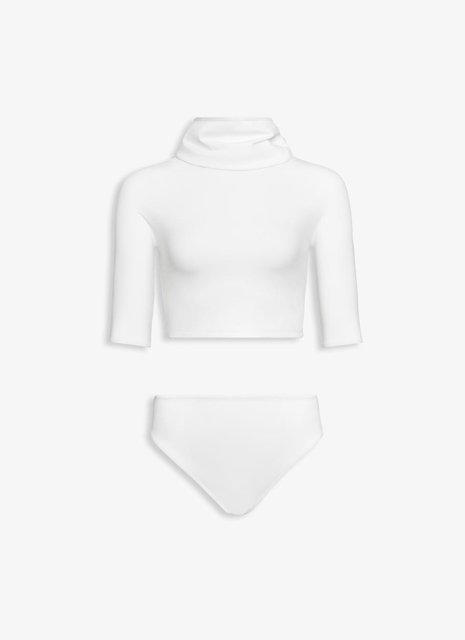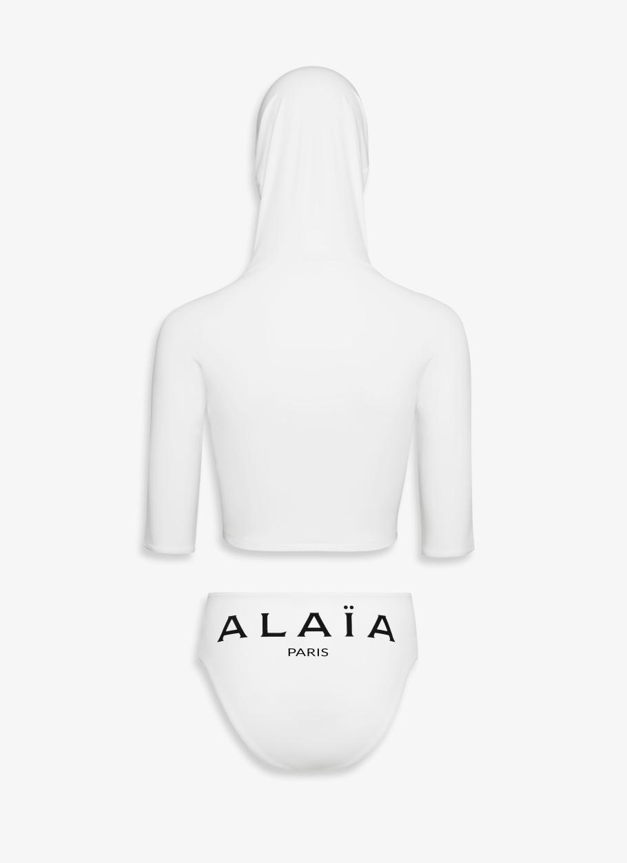 Features a flattering bandeau top; adjustable hooded t-shirt; cheeky culotte with signature branding