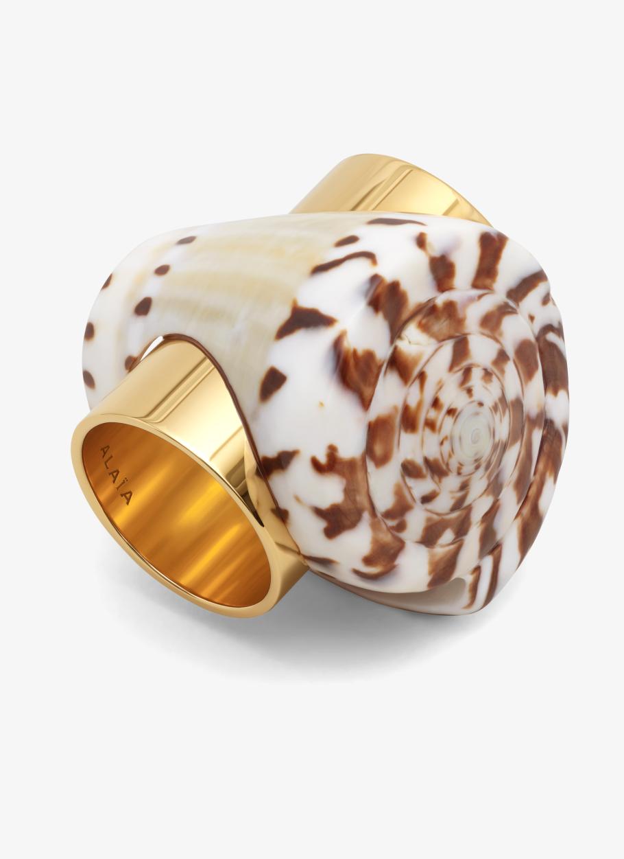 Exquisite natural seashell artfully mounted on a sleek metal tube ring