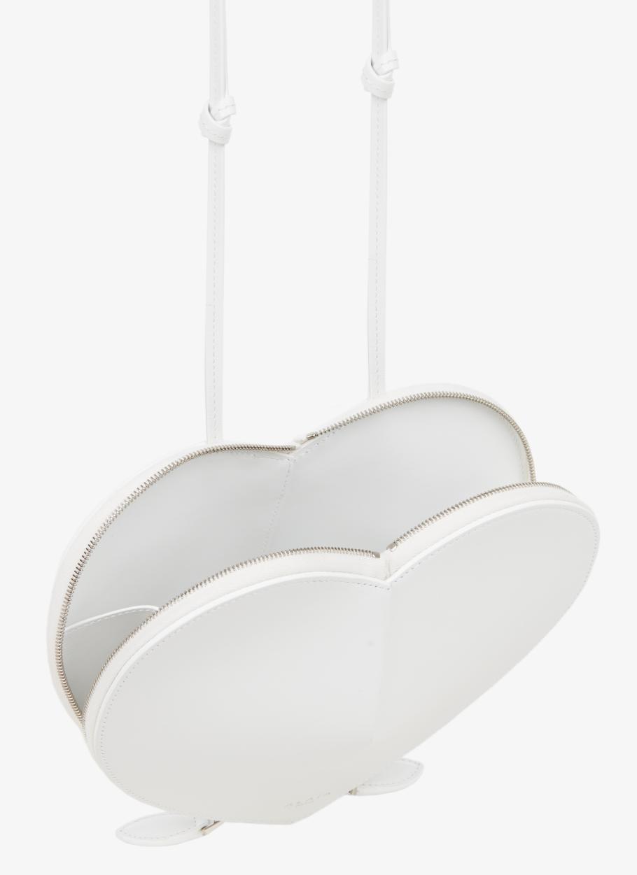 This exquisite heart-shaped bag features artfully sculpted leather that creates elegant volume and a beautifully pure silhouette, complete with secure zip closure and versatile adjustable strap.
