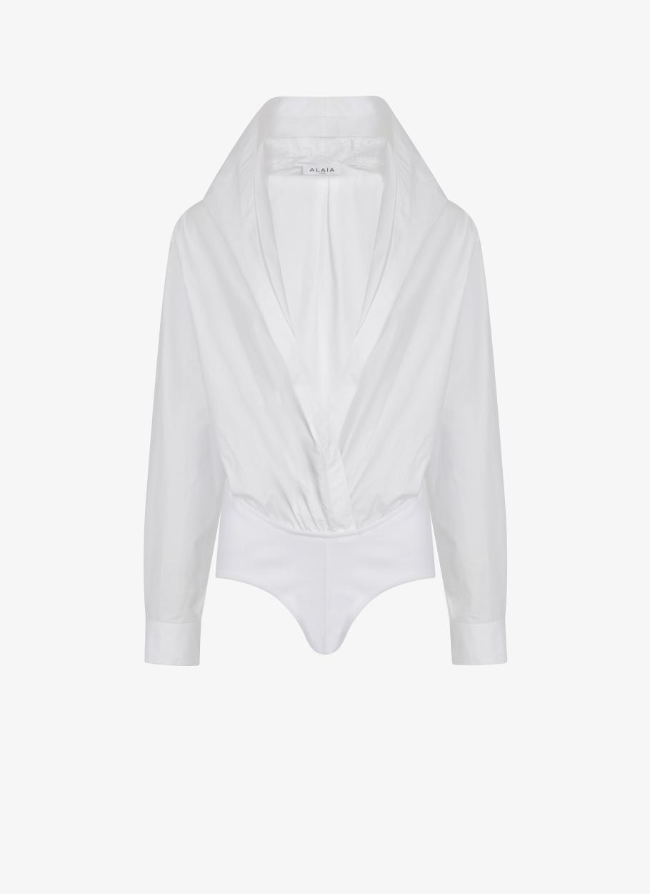 ALAÏA Women’s White Hooded Poplin Bodysuit