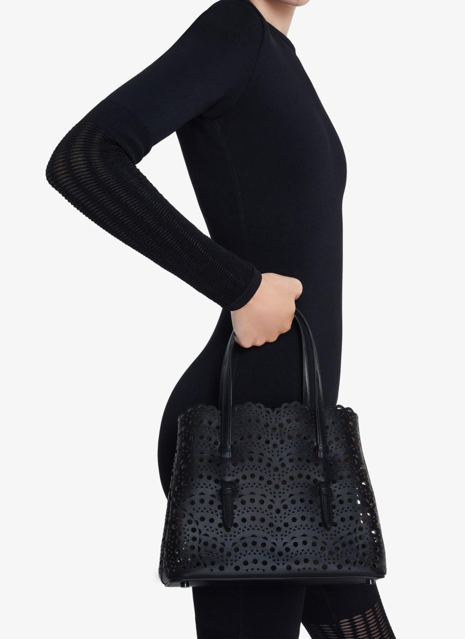Black Mina 25 Tote Bag in Vienne Wave Lux Calfskin | Women’s ALAÏA