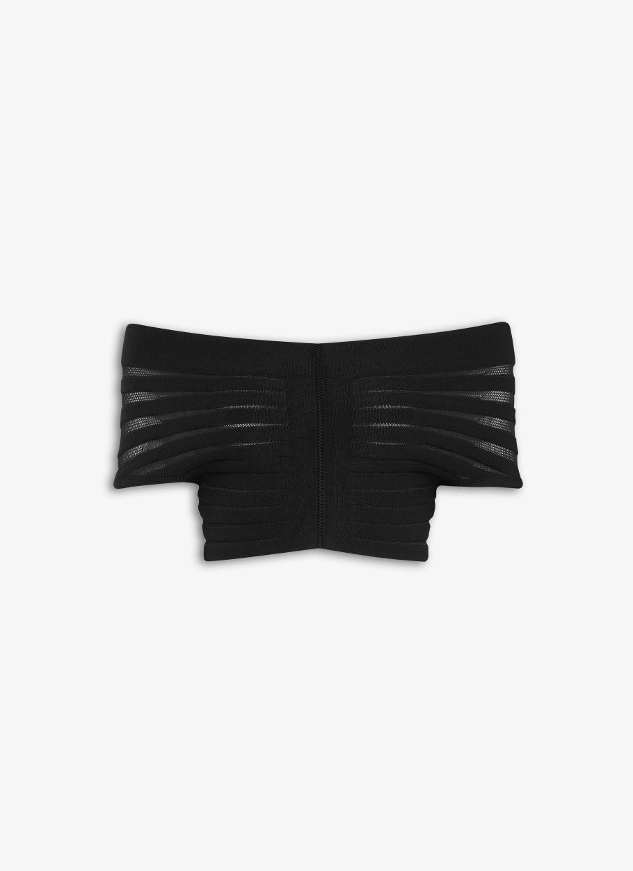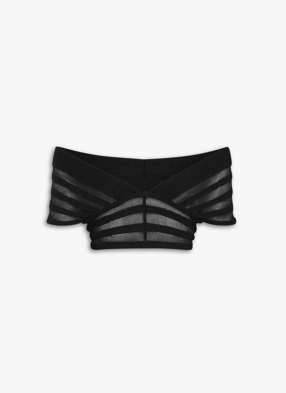 Showcases a stunning contrast of sheer and opaque knit detailing