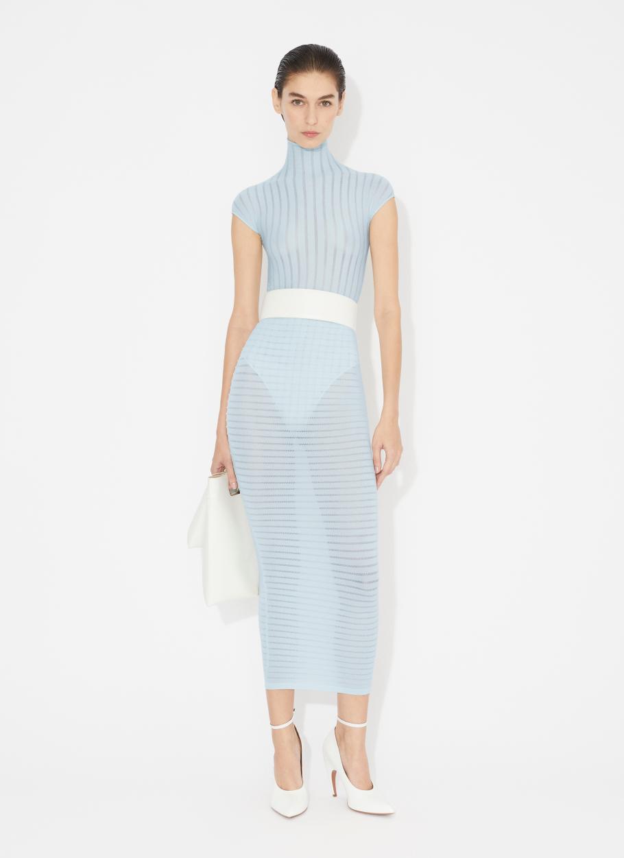 Sheer striped tube pencil skirt with a figure-flattering bodycon silhouette