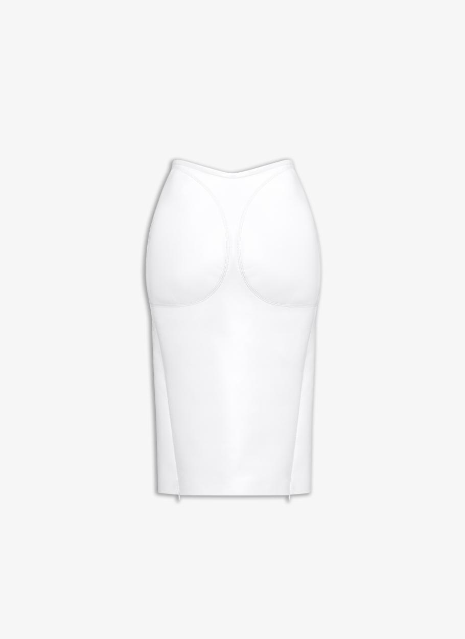 Features artfully upstitched circles over the hips for a distinctive silhouette