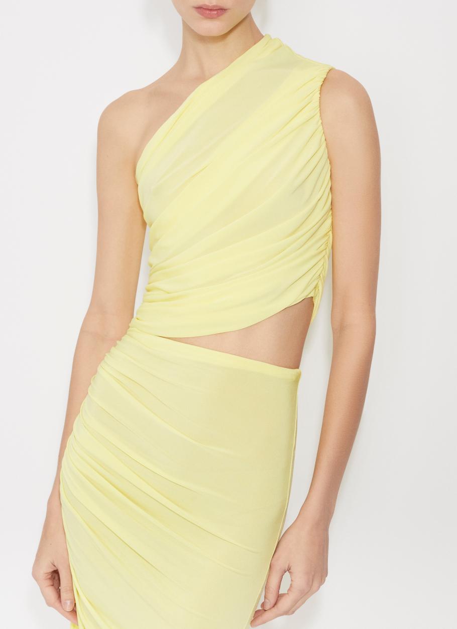 Elegant asymmetrical cut-out dress with dramatic single-shoulder design