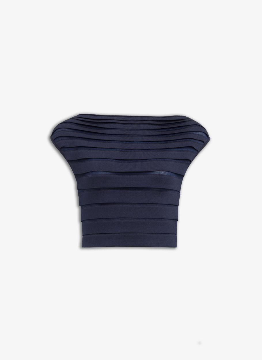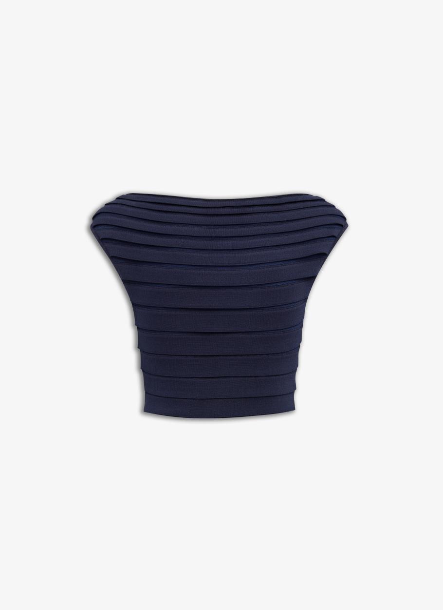 Exquisite scallop-detailed top featuring a striking straight neckline and chic cap sleeves