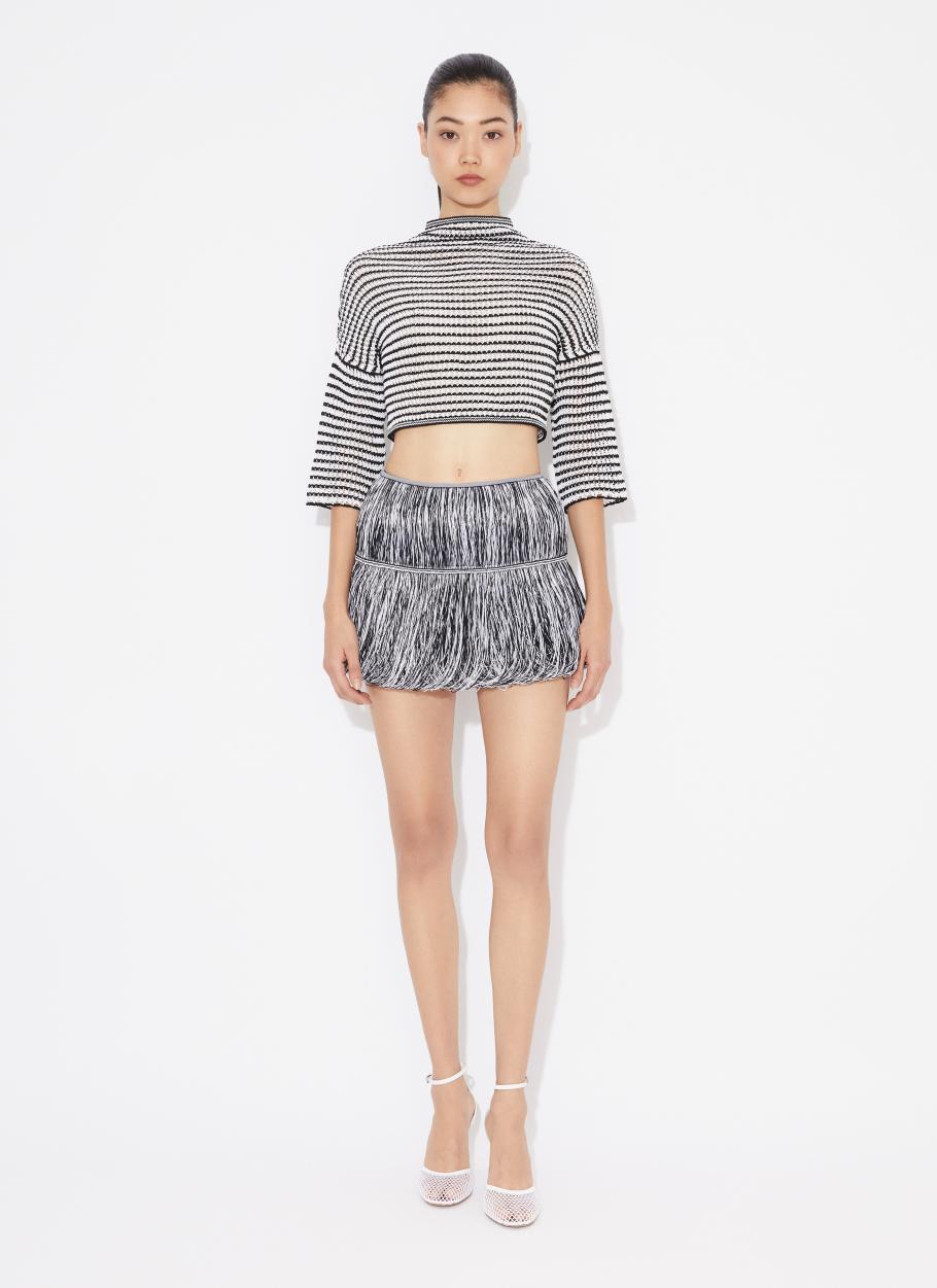 White/Black Raffia Fringe Skirt | Women’s ALAÏA Designer Skirt