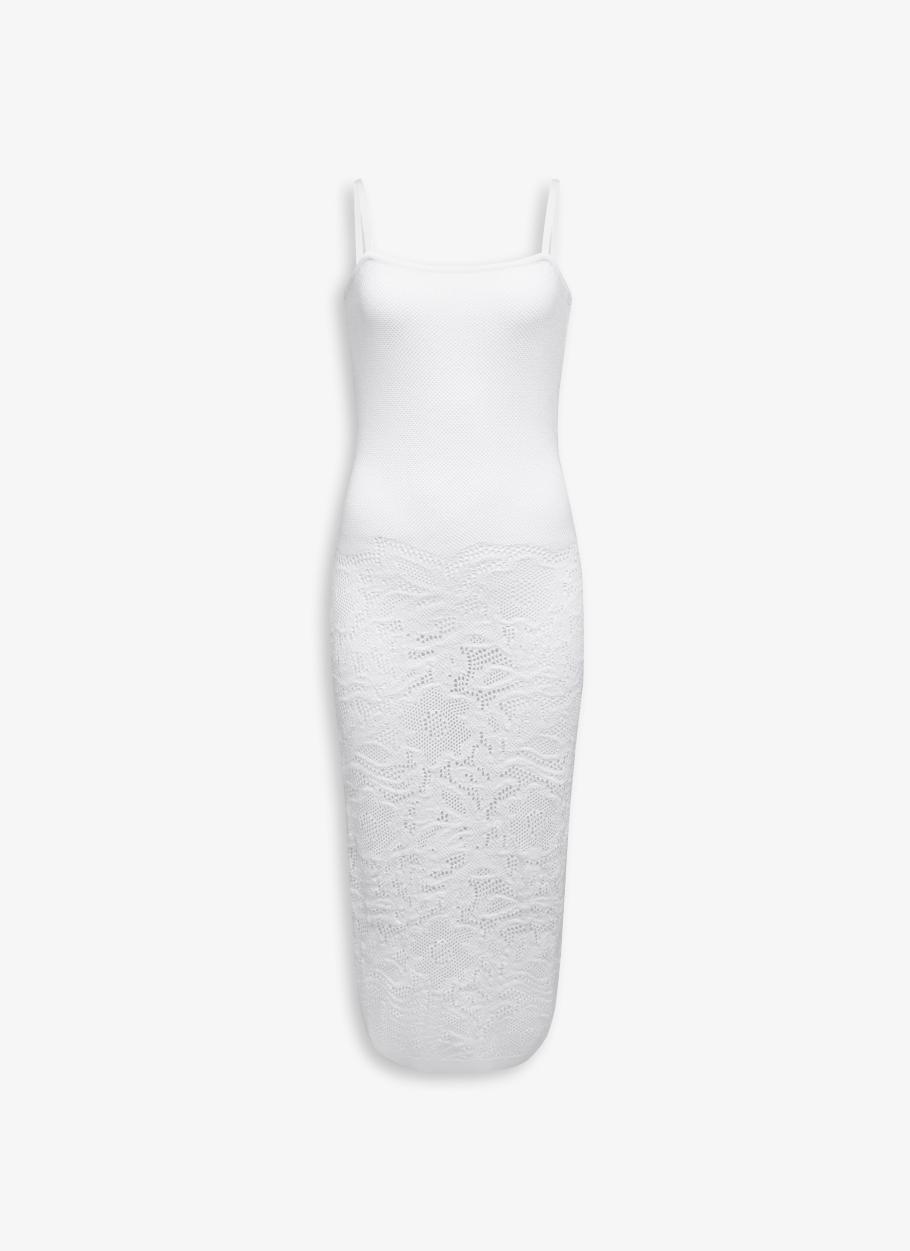 Elegant spaghetti straps enhance this beautiful pique lace dress