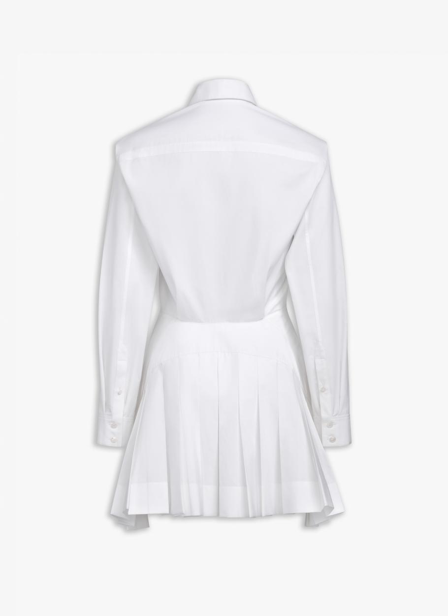 Discover our elegant poplin shirt-dress, designed to flatter your silhouette with timeless sophistication.